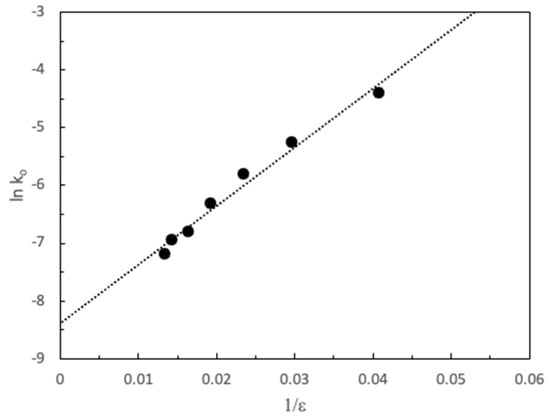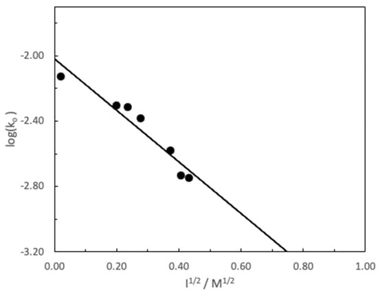 The values obtained fit the Brönsted-Bjerrum equation—Equation (2)—based on a simple Debye model [29].
