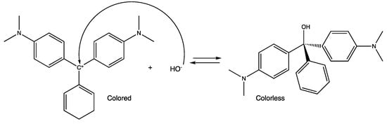 - Astray, G.; Cid, A.; Manso, J.A.; Mejuto, J.C.; Moldes, O.A.; Morales, J. Alkaline Fading of Triarylmethyl Carbocations in Self-Assembly Microheterogeneous Media. Prog. React. Kinet. Mech. 2011, 36, 139–165. [Google Scholar] [CrossRef]