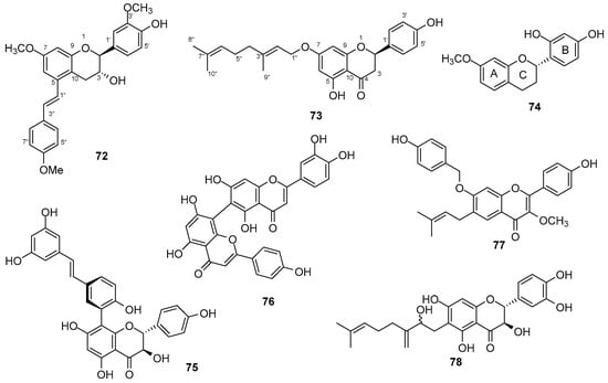 118. Cho, H.M.; Zhang, M.; Park, E.J.; Lee, B.W.; Park, Y.J.; Kim, H.W.; Pham, H.T.T.; Chin, Y.W.; Oh, W.K. Flavonostilbenes Isolated from the Stems of Rhamnoneuron Balansae as Potential SIRT1 Activators. J. Nat. Prod. 2022, 85, 70–82. [Google Scholar] [CrossRef]