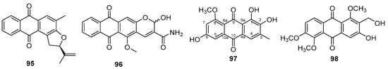 139. Wisetsai, A.; Lekphrom, R.; Schevenels, F.T. New Anthracene and Anthraquinone Metabolites from Prismatomeris Filamentosa and Their Antibacterial Activities. Nat. Prod. Res. 2021, 35, 1582–1589. [Google Scholar] [CrossRef]