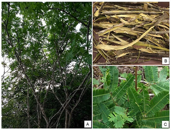 Throughout human history, natural plant products have remained attractive alternatives for the prevention and treatment of disease, and they play an important role in the development of modern medicine. This is mainly because of the many chemical structures present in their compositions [1]. Plants belonging to the Fabaceae and Mimosoidae subfamilies are richly constituted with secondary metabolites such as tannins, flavonoids, alkaloids, and saponins [2]. The antimicrobial, antioxidant, antitumor, antiparasitic, and anti-inflammatory properties of these constituents are well-documented in the literature [3,4,5].