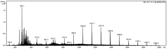 Full scan DI-ESI-MS/MS [M−H]− from the Piptadenia stipulacea (Benth.) ethanolic extract, m/z 100–2000. Fingerprint obtained by DI-ESI-IT-MS/MS in negative mode.