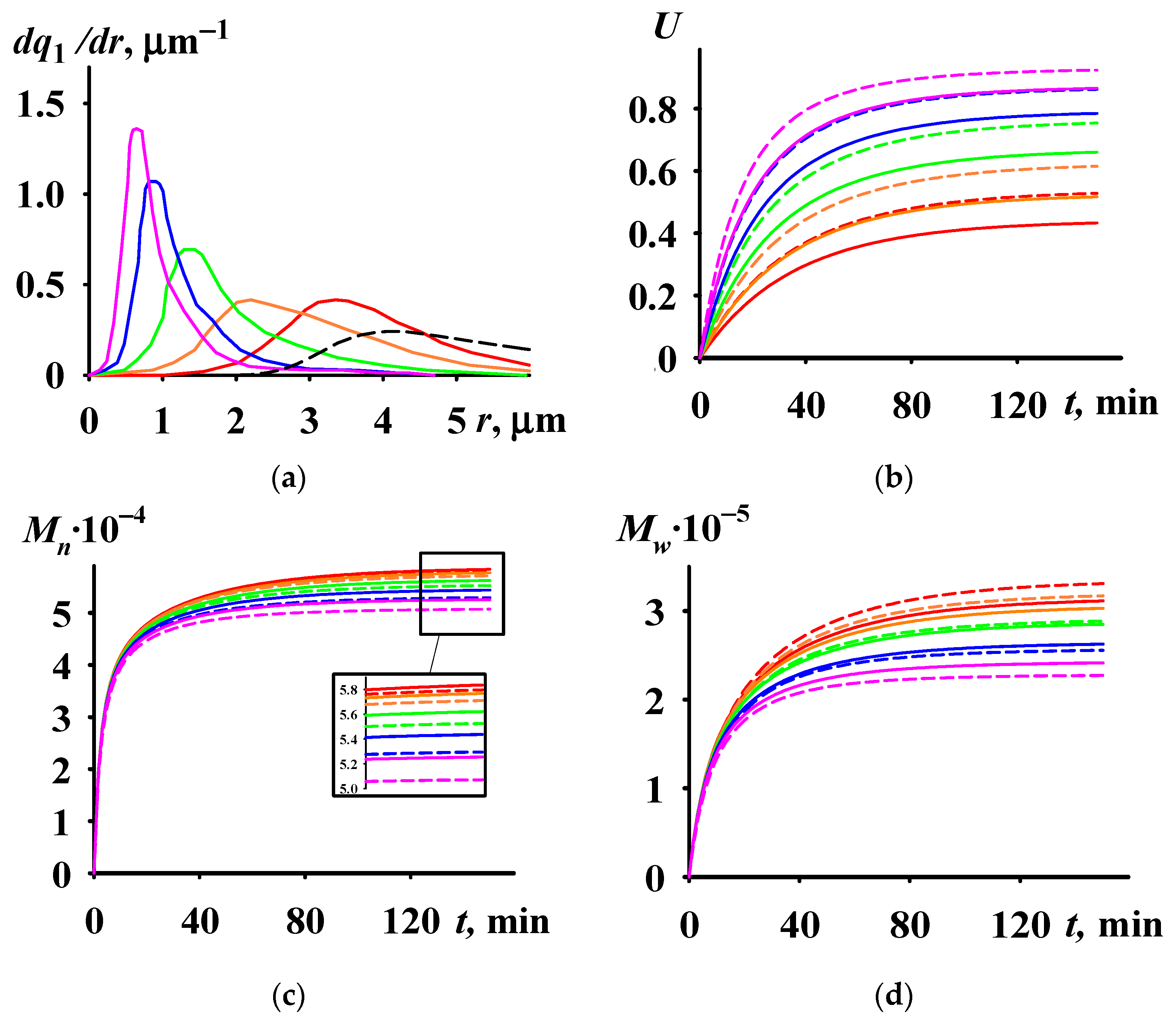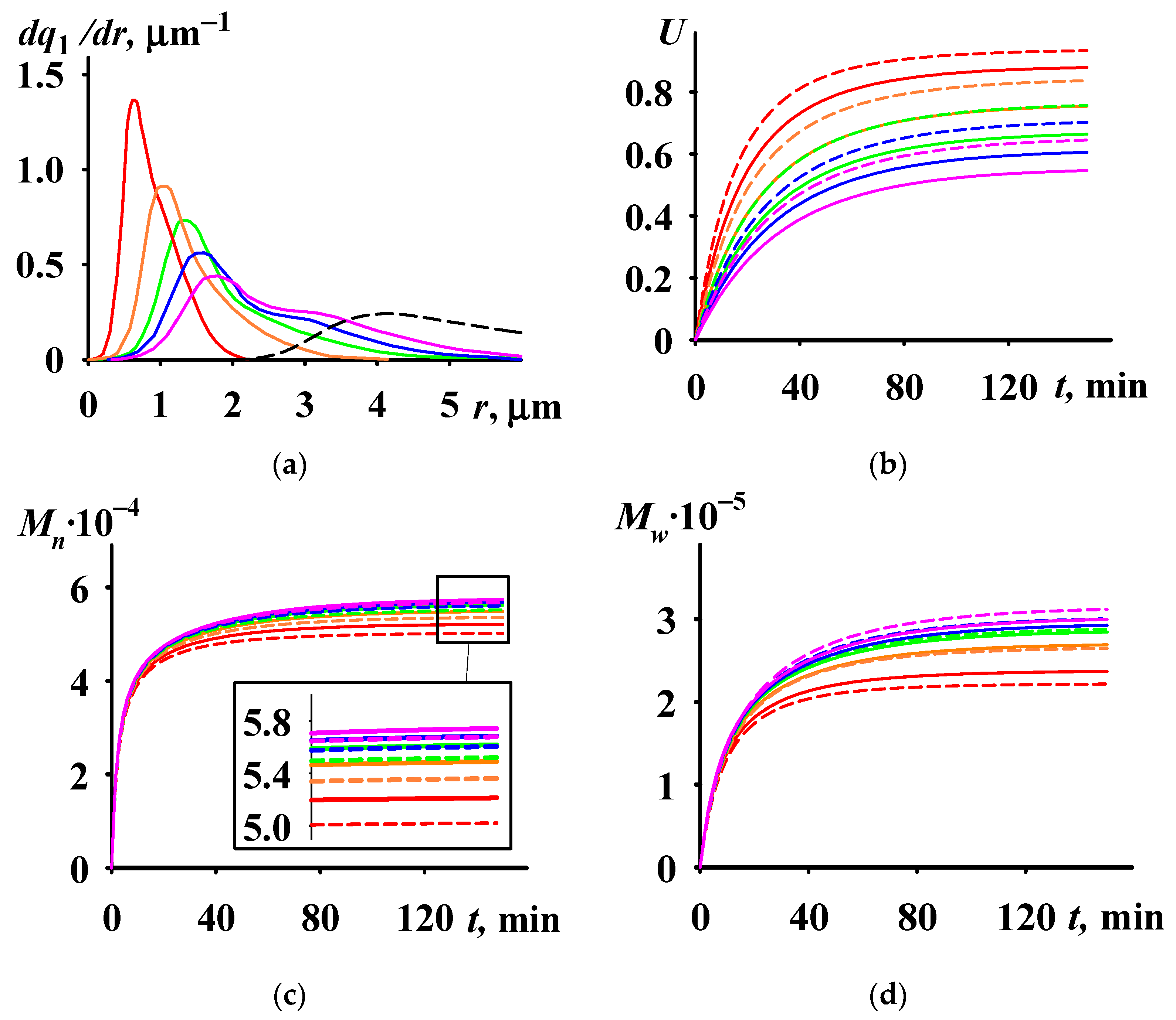 - Tereshchenko, K.A.; Ziganshina, A.S.; Zakharov, V.P.; Ulitin, N.V. Modeling of the Physicochemical Hydrodynamics of the Synthesis of Butadiene Rubber on the TiCl4−Al(i-C4H9)3 Catalytic System Modified in Turbulizing Flows. Russ. J. Phys. Chem. B 2017, 11, 504–512. [Google Scholar] [CrossRef]