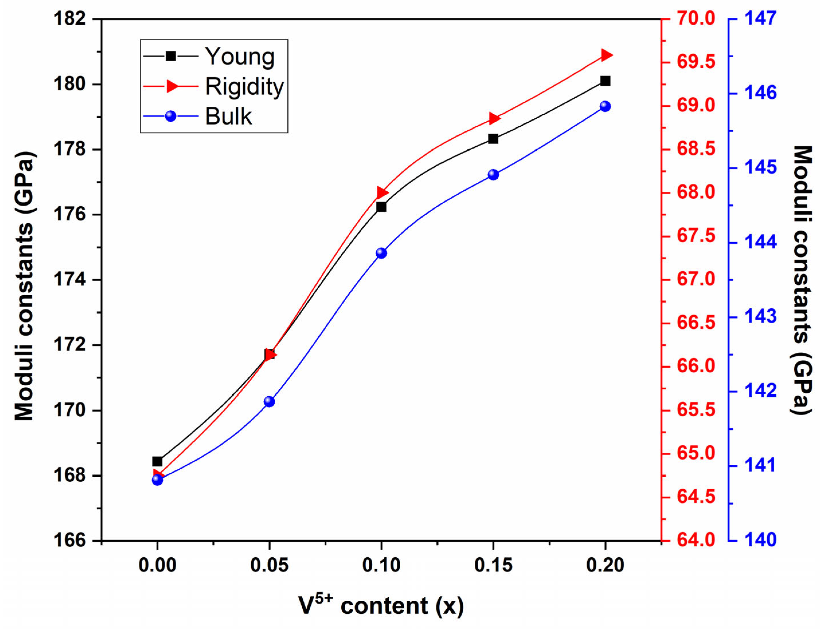 - Modi, K.B. Elastic Moduli Determination through IR Spectroscopy for Zinc Substituted Copper Ferri Chromates. J. Mater. Sci. 2004, 39, 2887–2890. [Google Scholar] [CrossRef]