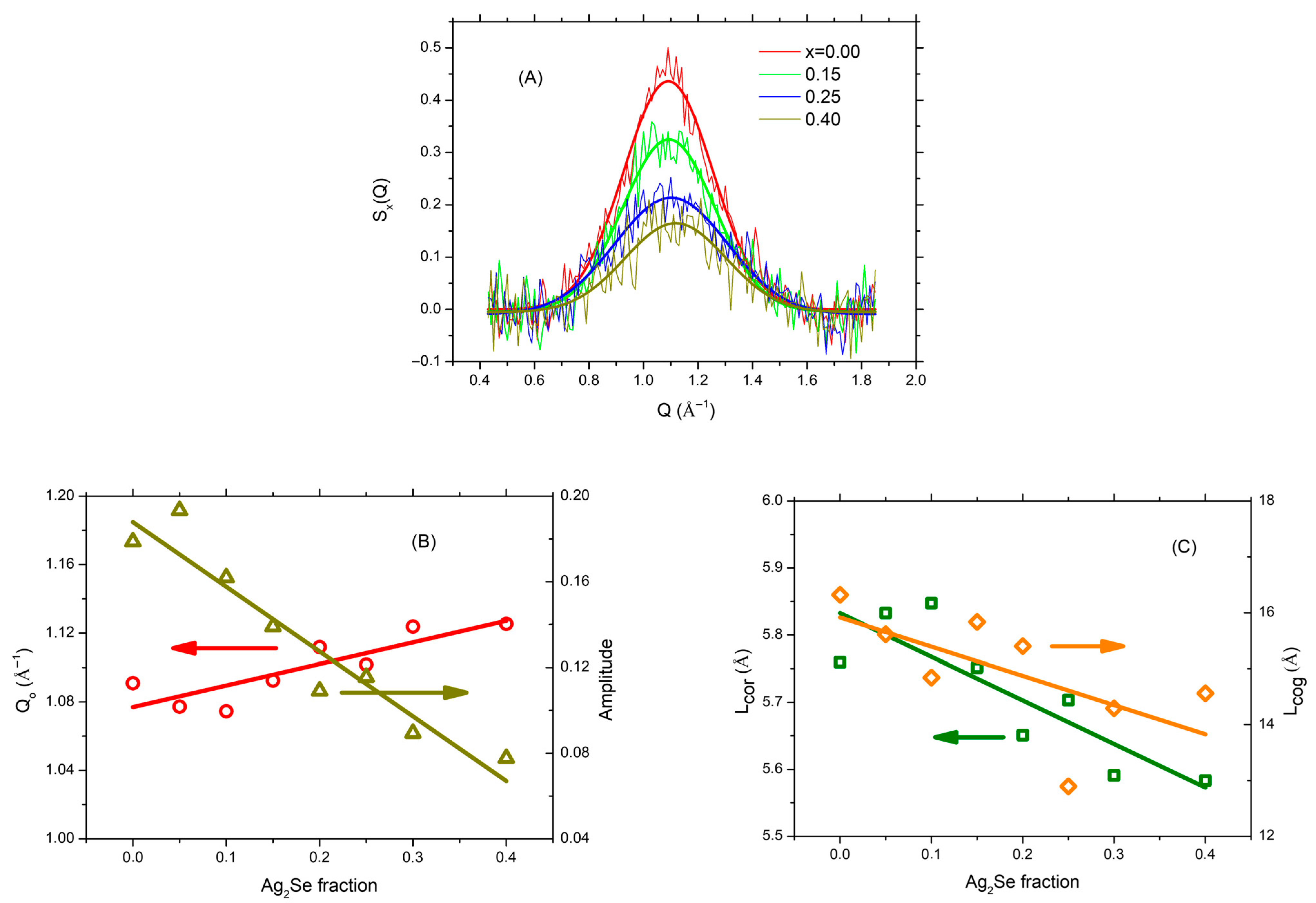 - Salmon, P.S.; Liu, J. The coordination environment of Ag and Cu in ternary chalcogenide glasses. J. Non-Cryst. Solids 1996, 205–207, 172–175. [Google Scholar] [CrossRef]