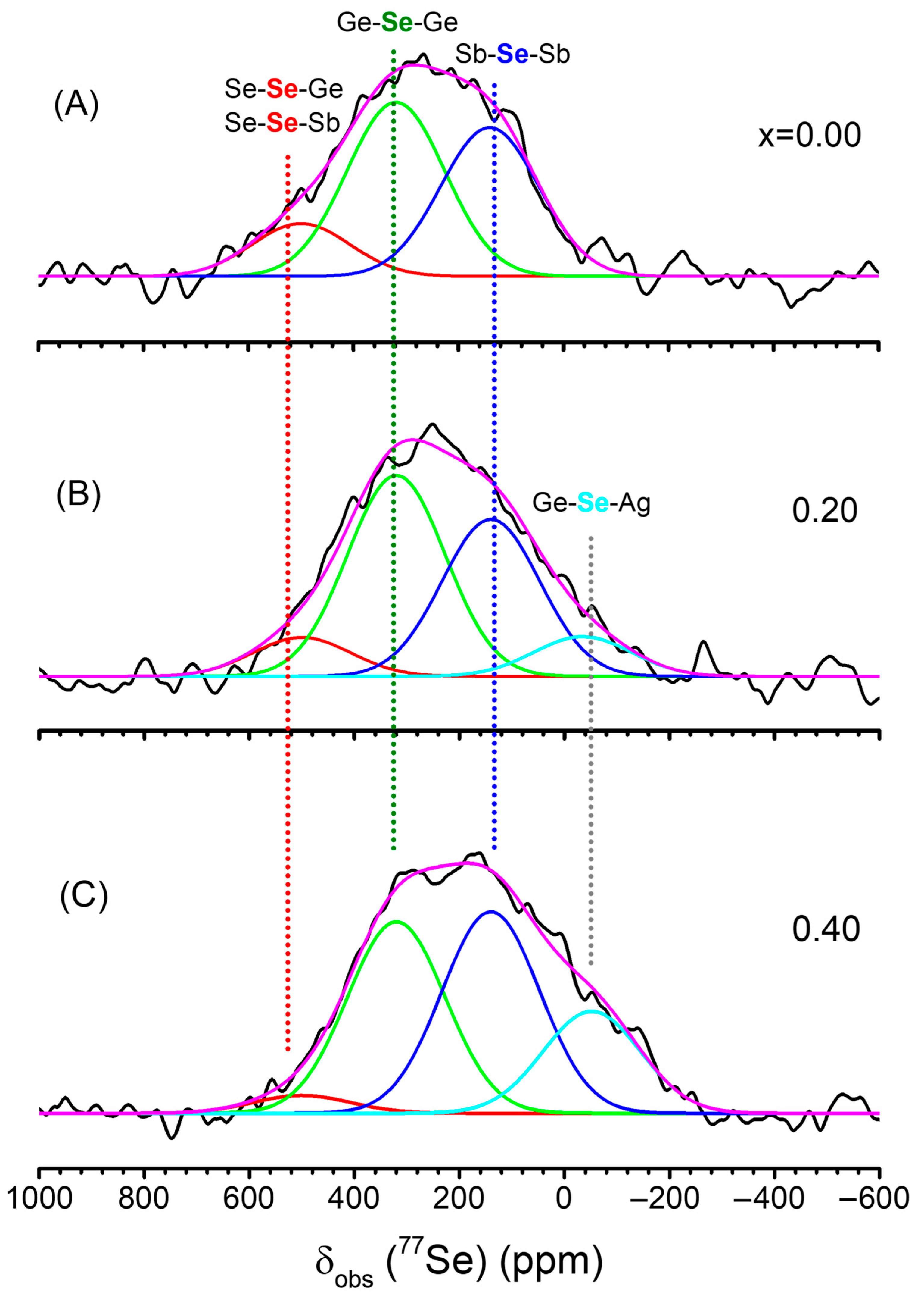 - Černošková, E.; Holubová, J.; Bureau, B.; Roiland, C.; Nazabal, V.; Todorov, R.; Černošek, Z. Thermoanalytical properties and structure of (As2Se3)100−x(Sb2Se3)x glasses by Raman and 77Se MAS NMR using a multivariate curve resolution approach. J. Non-Cryst. Solids 2016, 432, 426–431. [Google Scholar] [CrossRef]