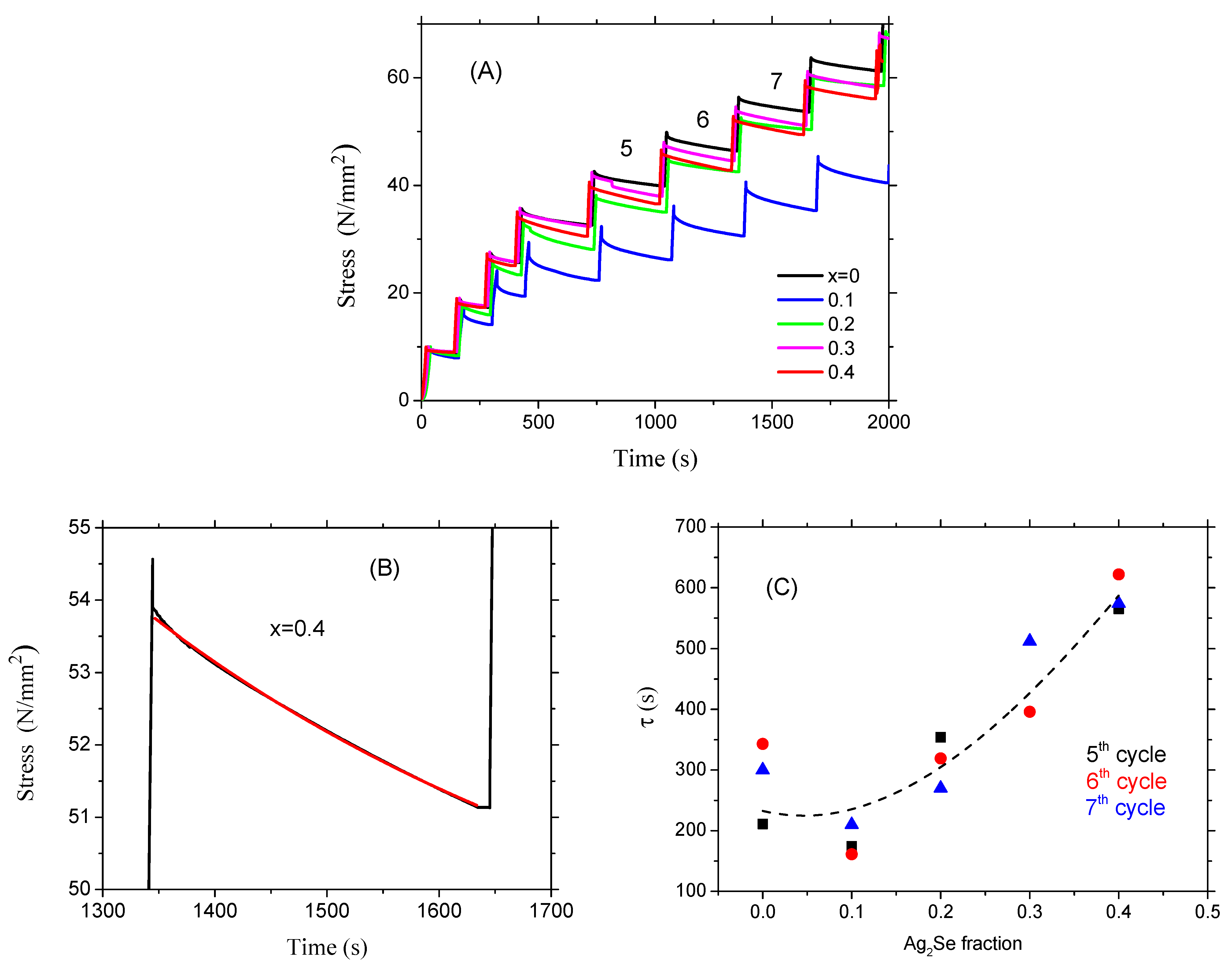 - Tveryanovich, Y.S.; Fazletdinov, T.R.; Tverjanovich, A.S.; Pankin, D.V.; Smirnov, E.V.; Tolochko, O.V.; Panov, M.S.; Churbanov, M.F.; Skripachev, I.V.; Shevelko, M.M. Increasing the Plasticity of Chalcogenide Glasses in the System Ag2Se–Sb2Se3–GeSe2. Chem. Mater. 2022, 34, 2743–2751. [Google Scholar] [CrossRef]