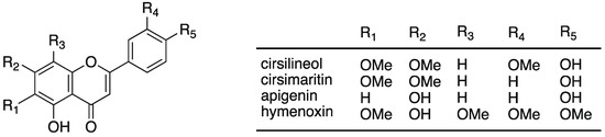 - Sheng, X.; Sun, Y.; Yin, Y.; Chen, T.; Xu, Q. Cirsilineol inhibits proliferation of cancer cells by inducing apoptosis via mitochondrial pathway. J. Pharm. Pharmacol. 2008, 60, 1523–1529. [Google Scholar] [CrossRef] [PubMed]