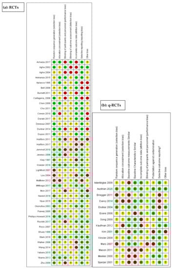 Methodological quality of the 54 studies (a) RCTs, (b) q-RCTs.