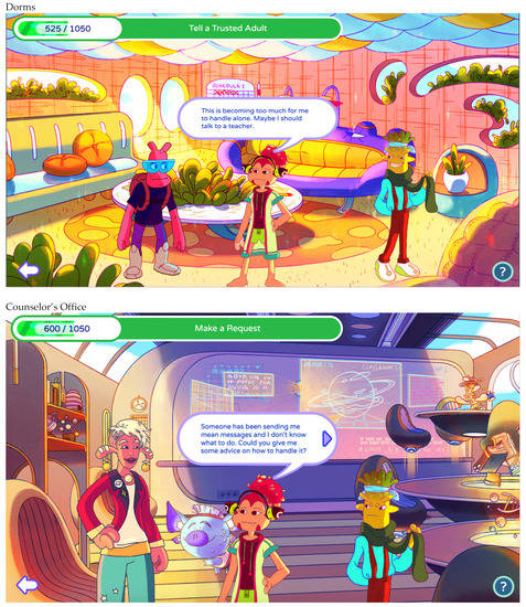 Bullying frequently occurs using online communications. Thus, using digital health tools to deliver bullying prevention content represents an alternative and innovative model for positive technology use [43]. In particular, interactive educational video games can be used to model developmentally appropriate online and in-person communication and engagement. Educational video gaming has been shown to be an effective means by which children and adolescents can learn to handle real-life difficulties and situations [43,44,45]. Video games have been used with success in health education and in preventing youth drug abuse, drunk driving, high-risk sexual behavior, and violence [46,47,48]. Approximately, ninety percent of teenagers in the US play video games [49], which presents an important opportunity for delivering pro-health behavioral interventions.