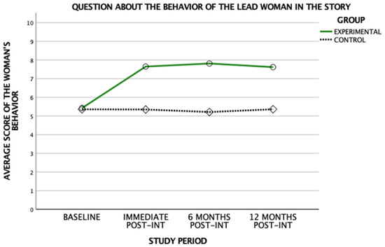 Effect of the educational intervention on the evaluation of the passive behavior of the female protagonist. In assessing the girl’s behavior, a higher score reflects fewer sexist attitudes.