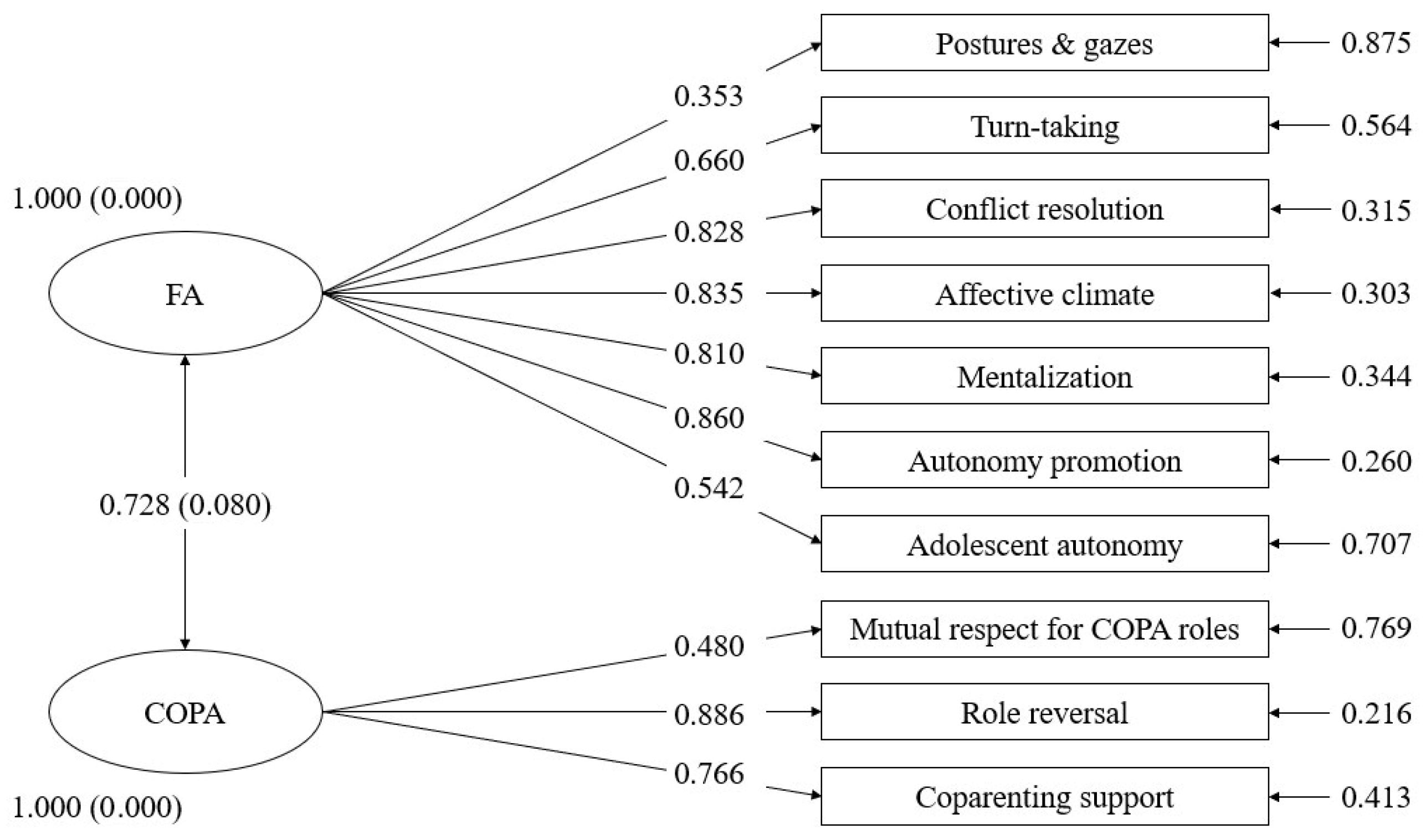 - Favez, N.; Lavanchy Scaiola, C.; Tissot, H.; Darwiche, J.; Frascarolo, F. The family alliance assessment scales: Steps toward validity and reliability of an observational assessment tool for early family interactions. J. Child Fam. Stud. 2011, 20, 23–37. [Google Scholar] [CrossRef]