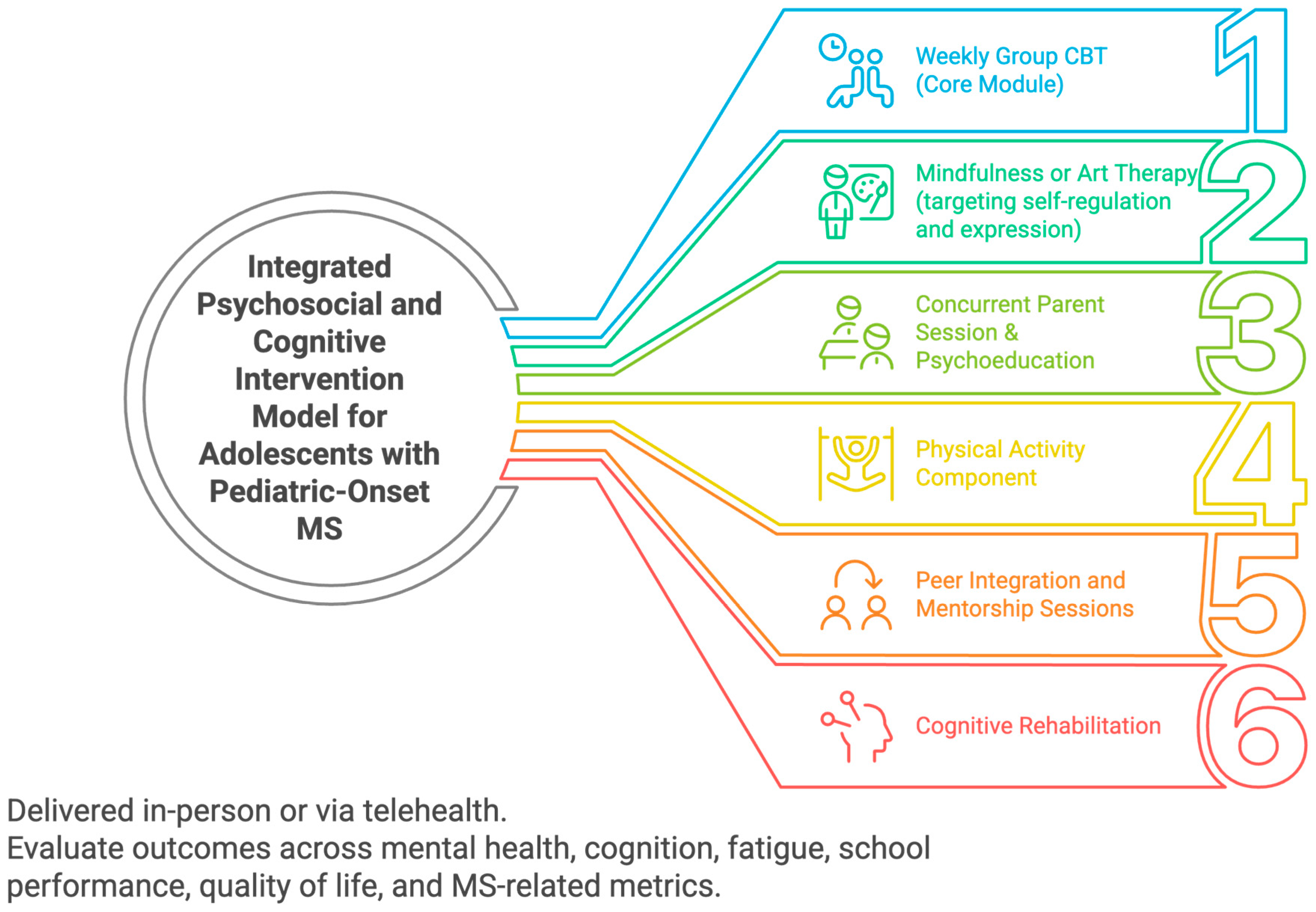 | Family Programs and Psychoeducation | - Family therapy is not well-studied in adult MS [81] - Psychoeducational programs increase patient knowledge and may reduce anxiety and stress [82] | - Parent-focused psychological interventions in pediatric chronic illness improve parent mental health and indirectly child outcomes, though quality of evidence is low [83] - While outcomes are mixed, psychoeducational interventions, especially those using family-focused or tech-supported delivery, can improve disease management and psychosocial outcomes in chronically ill adolescents [84] |