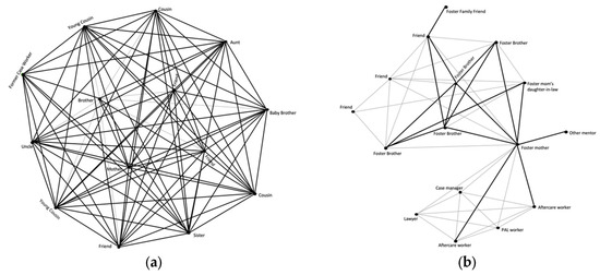 - Rosenberg, R. Social networks of youth transitioning from foster care to adulthood. Child. Youth Serv. Rev. 2019, 107, 104520. [Google Scholar] [CrossRef]