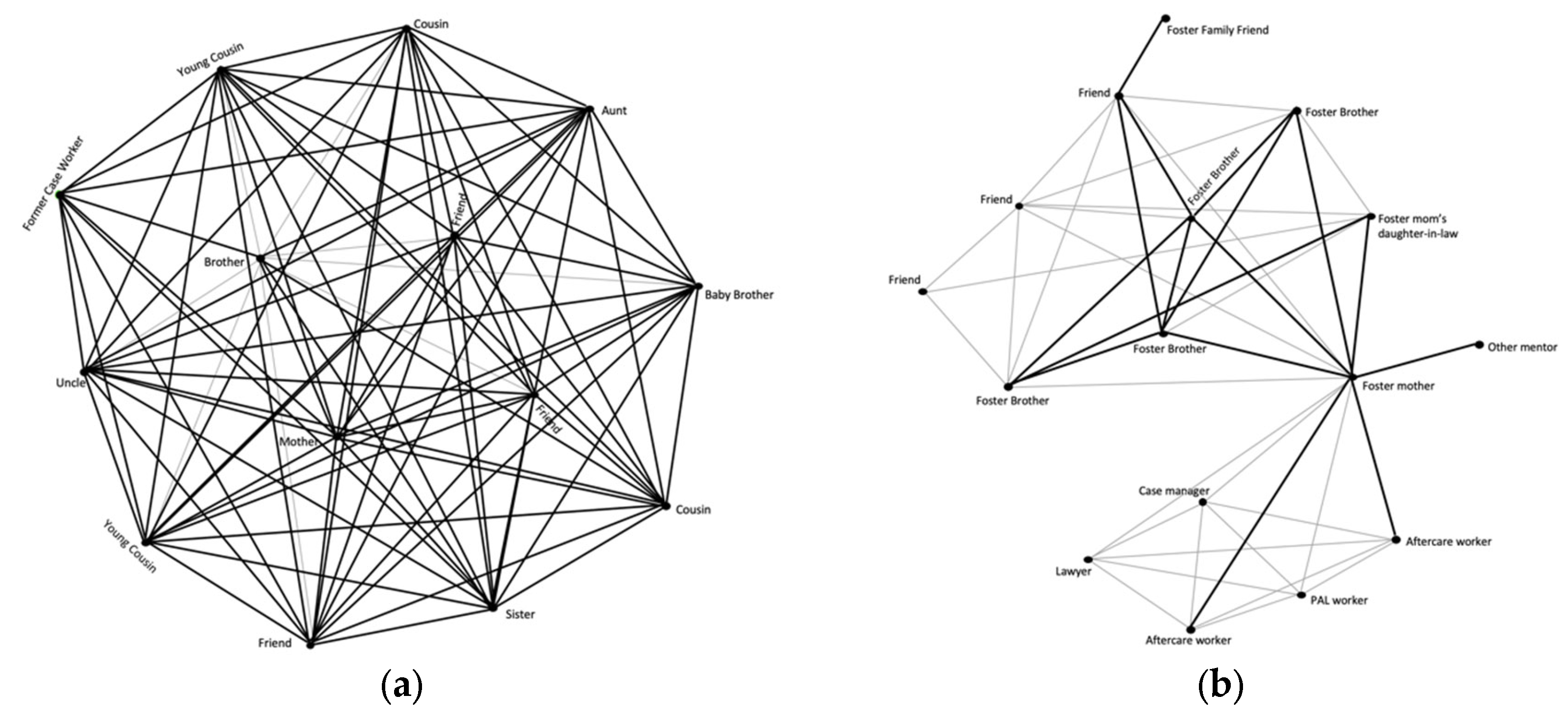 Figure 2b). Notably, no professionals connected to the foster care system are in the network. Connections with family were recent reconnections, and Denise was hopeful that these would translate into long-term support.