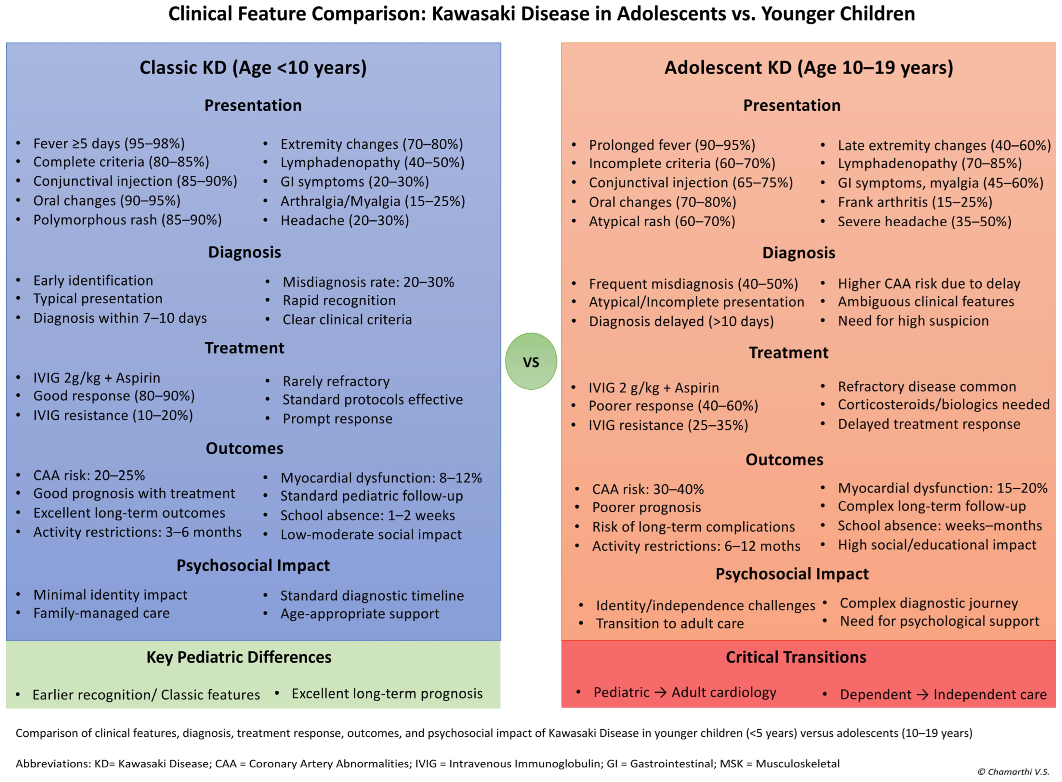 1]. While most insights are derived from younger children, it remains unclear whether adolescents with KD exhibit distinct immunologic or vascular responses that contribute to their higher rates of treatment resistance and coronary complications.