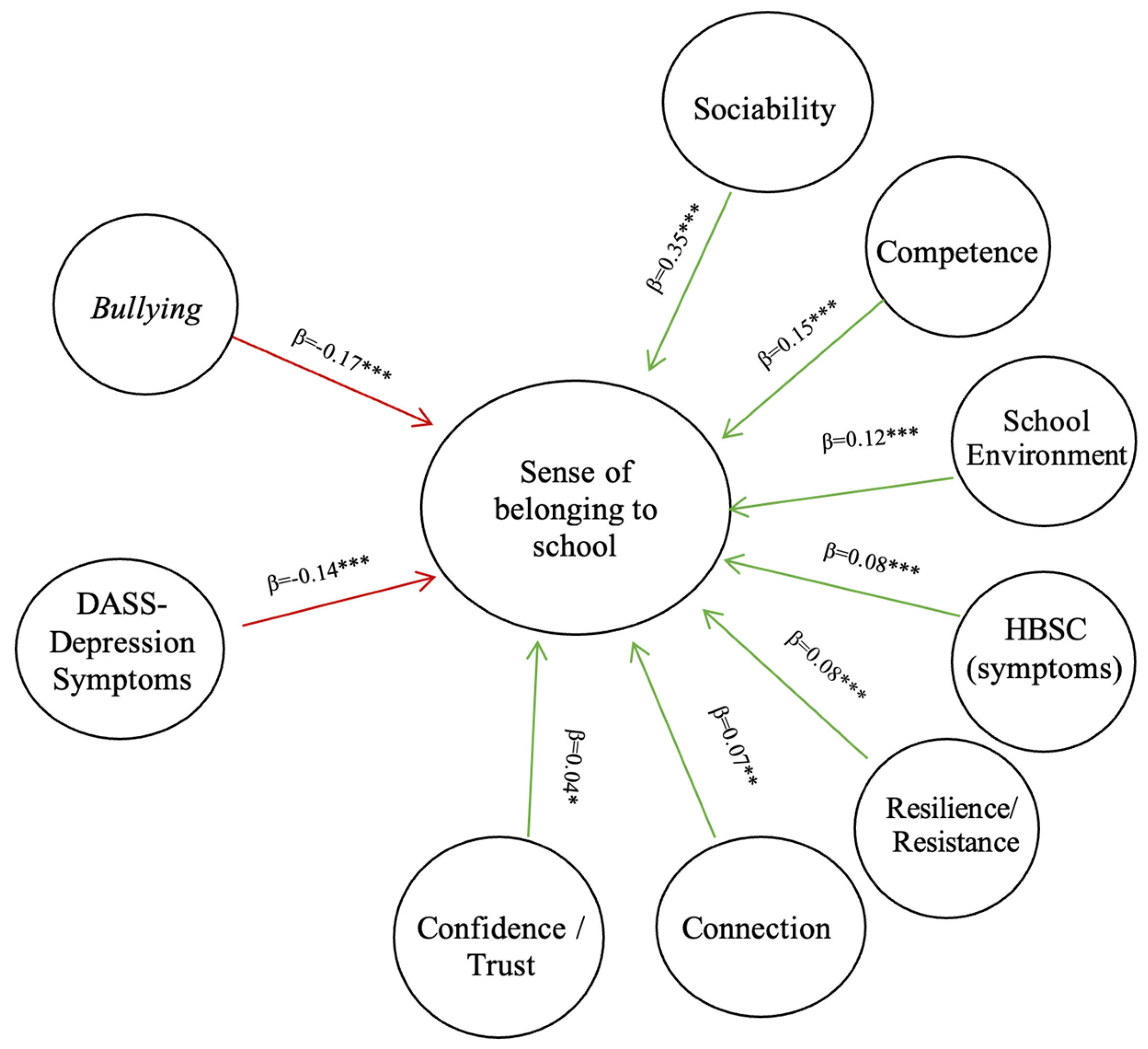 A linear regression analysis was performed to identify the predictors of the feeling of school belonging (