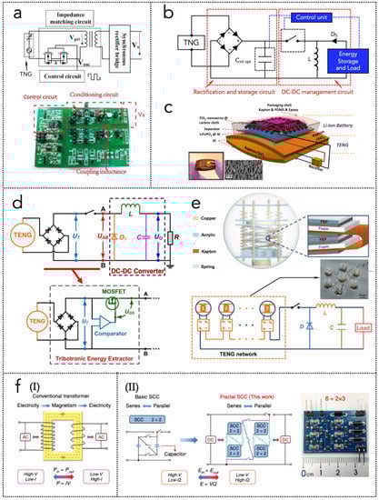 - Liu, W.; Wang, Z.; Wang, G.; Zeng, Q.; He, W.; Liu, L.; Wang, X.; Xi, Y.; Guo, H.; Hu, C.; et al. Switched-Capacitor-Convertors Based on Fractal Design for Output Power Management of Triboelectric Nanogenerator. Nat. Commun. 2020, 11, 1883. [Google Scholar] [CrossRef] [PubMed]