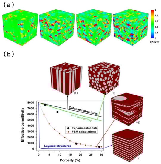 - Zhang, Y.; Roscow, J.; Lewis, R.; Khanbareh, H.; Topolov, V.Y.; Xie, M.; Bowen, C.R. Understanding the effect of porosity on the polarisation-field response of ferroelectric materials. Acta Mater. 2018, 154, 100–112. [Google Scholar] [CrossRef]