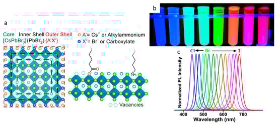 - Paul, S.; Acharya, S. Postsynthesis transformation of halide perovskite nanocrystals. ACS Energy Lett. 2022, 7, 2136–2155. [Google Scholar] [CrossRef]