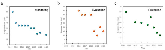 Response time of TENG-based sports in (a) monitoring, (b) evaluation, and (c) protection.