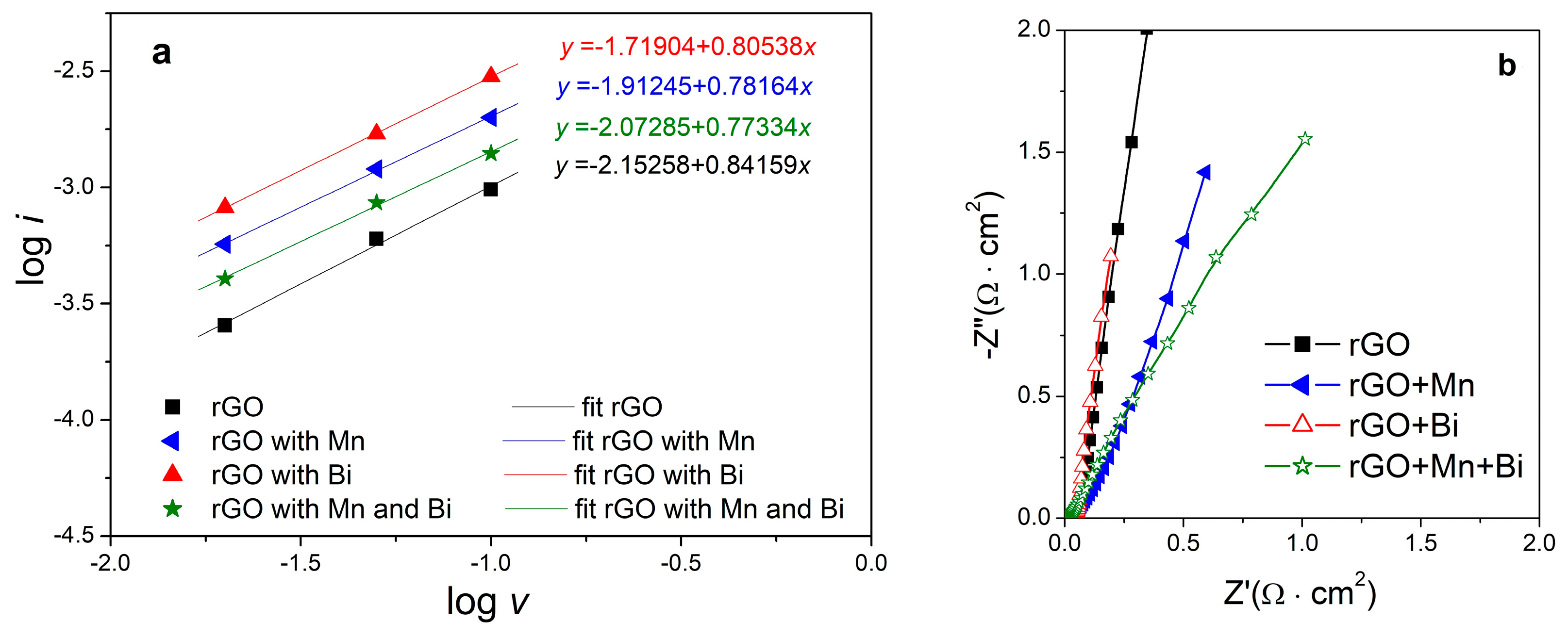 - Ciszewski, M.; Mianowski, A.; Szatkowski, P.; Nawrat, G.; Adamek, J. Reduced graphene oxide-bismuth oxide composite as electrode material for supercapacitors. Ionics 2015, 21, 557–563. [Google Scholar] [CrossRef]