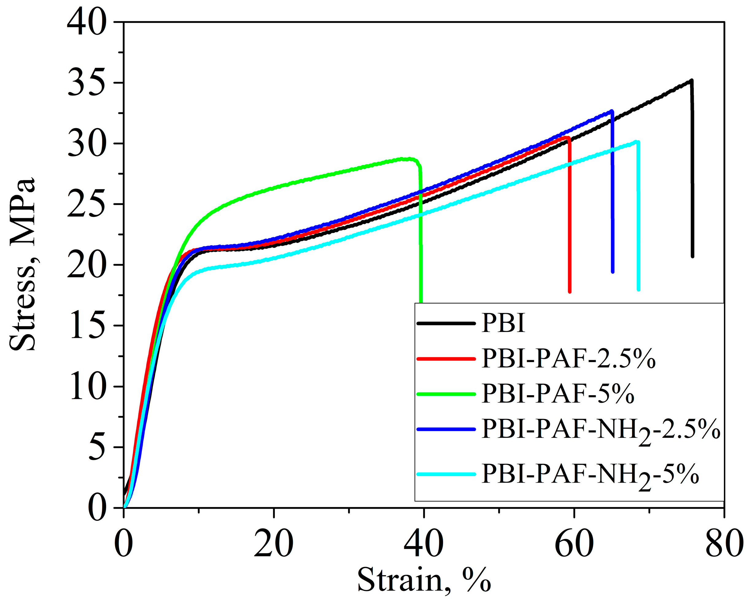 Figure 6. Strain-stress curves of membranes.