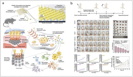 In addition to direct effects on cancer cells, electrical stimulation can modulate the immune response against tumors. High-frequency electrical stimulation has been shown to enhance immune activity by promoting cytokine release and increasing the infiltration of immune cells into tumor sites. This dual action not only attacks cancer cells directly but also recruits the body’s immune system to recognize and eliminate tumor cells more effectively. For example, studies have demonstrated that combining electrical stimulation with immunotherapeutic agents can reduce tumor sizes in immune-competent mouse models while having minimal effects in immune-deficient models []. This suggests that ES may enhance the effectiveness of immunotherapies by improving drug delivery through electroporation or by stimulating an endogenous immune response.