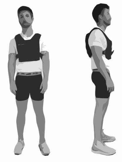 Depicts the weighted vest worn for the 15 kg and 30 kg load conditions, which was systematically adjusted to apply the necessary load for both conditions.
