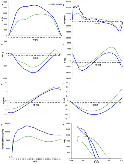 - Kinetic parameters: peak force output (F); peak rate of force development (RFD); power in the propulsion phase (P); vertical stiffness (KVERT); leg stiffness (KLEG).