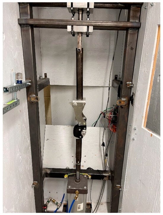 Different variations of the pneumatic rig, shown in Figure 3, were used for the mathematical model validation, frame testing, and piston selection. During each of these trials, the frequency of the system load cell was 100 Hz, and the loading rate of the pneumatic piston was 100 N/s.