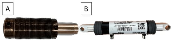 (A) Vektek threaded single-acting piston; (B) Bansbach double-acting piston.