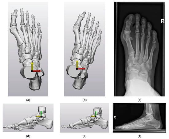 - Gutekunst, D.J.; Liu, L.; Ju, T.; Prior, F.W.; Sinacore, D.R. Reliability of clinically relevant 3D foot bone angles from quantitative computed tomography. J. Foot Ankle Res. 2013, 6, 38. [Google Scholar] [CrossRef]