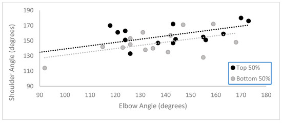 Pearson correlation coefficients (r) were used to examine the strength of the relationships between SA and EA at holds 1–5. Kendall’s coefficient of rank correlation tau-sub-b (τB) was used to examine the strength of the relationship between all spatiotemporal variables and competition rank. Paired t-tests were used to compare kinematic and spatiotemporal variables between the top and bottom 50% of competitors. Statistical analyses were conducted in JASP (University of Amsterdam, Amsterdam, The Netherlands), and statistical significance was defined as p ≤ 0.05.