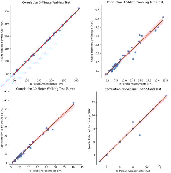 Although alternative submaximal tests can provide more granular data points, the selected tests prioritize patient safety and offer a practical approach to evaluating key aspects of patient health, including endurance, aerobic capacity, lower body strength, and fall risk [,,,,,]. These three tests require minimal equipment and are readily accessible for patients to perform. In contrast, the submaximal Wingate test [] provides a more precise estimate of aerobic capacity and lower body strength but requires specialized equipment and expertise. These reasons make the 6MWT, the 10MWT, and the 30STS ideal for use in various settings and with patients with diverse physical capabilities.