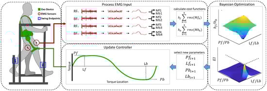 - Kim, M.; Ding, Y.; Malcolm, P.; Speeckaert, J.; Siviy, C.J.; Walsh, C.J.; Kuindersma, S. Human-in-the-loop Bayesian optimization of wearable device parameters. PLoS ONE 2017, 12, e0184054. [Google Scholar] [CrossRef] [PubMed]