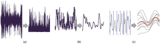 - A moving average filter with a window size of up to 400 data points (∼1.6% of the dataset length) smooths the overall signal (Figure 3b).
