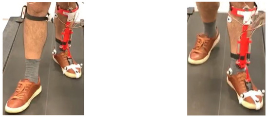 Motion capture (MoCap) was used to assess the kinematic performance of the device. By using the MoCap data and a geometric model, the user’s ankle angle (in the sagittal plane) was recorded. This was done for both the normal gait and assisted gait experiments (explained in Section 3). A comparison was then made, as shown in Figure 9.