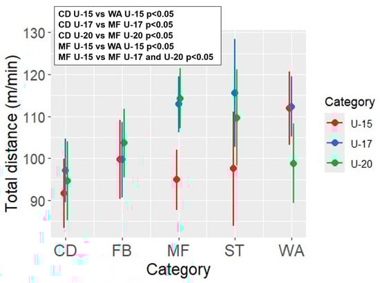 - Silva, A.F.; Alvurdu, S.; Akyildiz, Z.; Badicu, G.; Greco, G.; Clemente, F.M. Variations of the locomotor profile, sprinting, change-of-direction, and jumping performances in youth soccer players: Interactions between playing positions and age-groups. Int. J. Environ. Res. Public Health 2022, 19, 998. [Google Scholar] [CrossRef] [PubMed]
