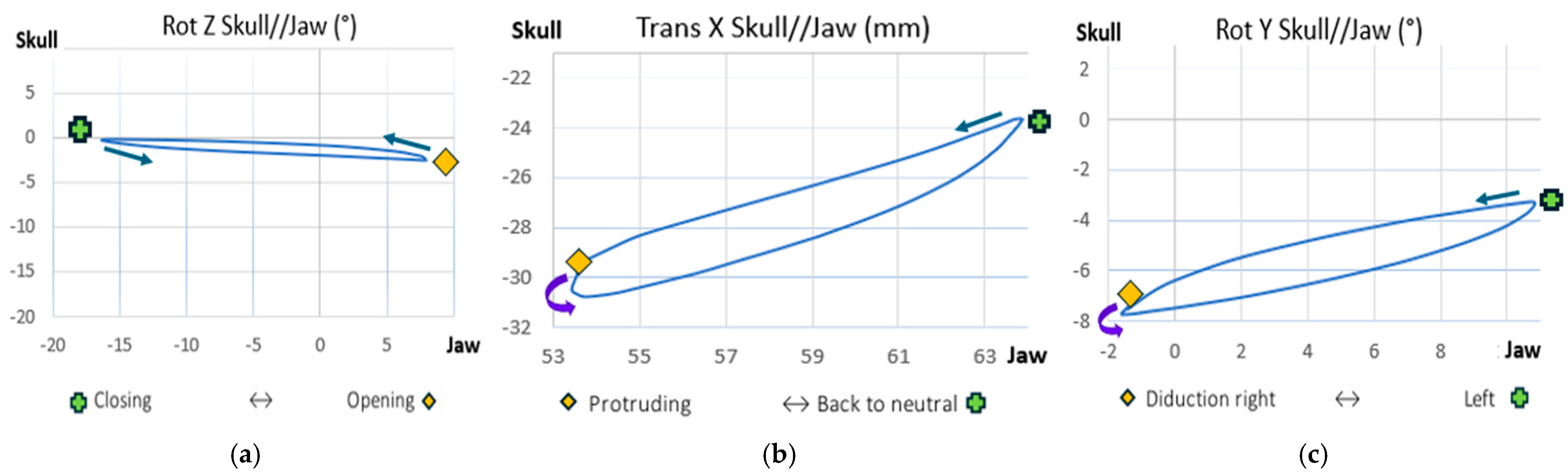 | Opening/Closing Rot Z | Laterotrusion Rot Y | Protrusion Trans X |