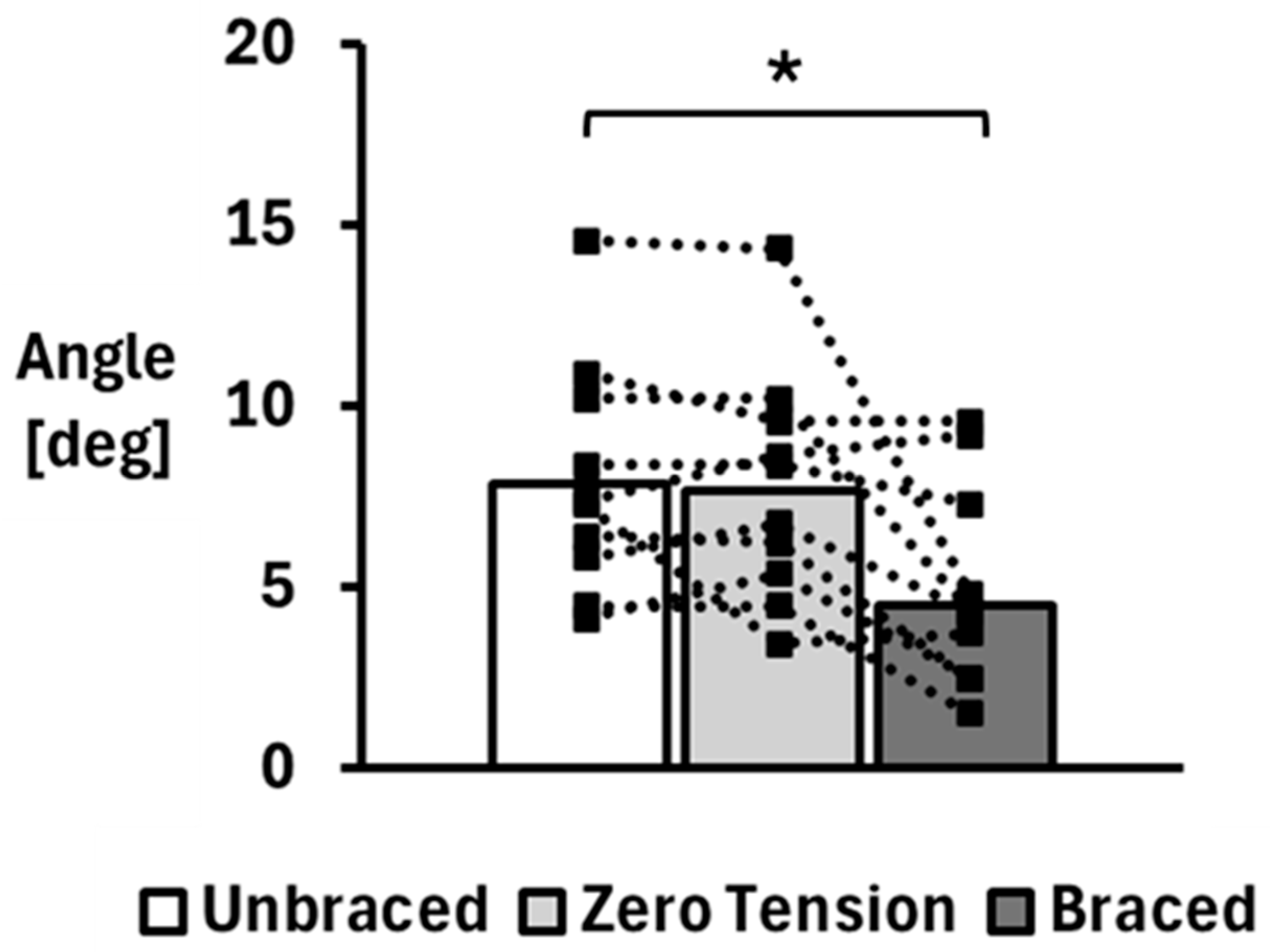 - Focke, A.; Steingrebe, H.; Möhler, F.; Ringhof, S.; Sell, S.; Potthast, W.; Stein, T. Effect of Different Knee Braces in ACL-Deficient Patients. Front. Bioeng. Biotechnol. 2020, 8, 964. [Google Scholar] [CrossRef]