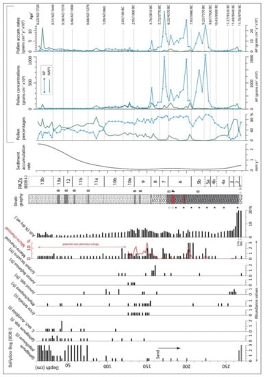 - Gaillard, M.-J.; Sugita, S.; Bunting, J.; Dearing, J.; Bittmann, F. Human impact on terrestrial ecosystems, pollen calibration and quantitative reconstruction of past land-cover. Veget. Hist. Archaeobot. 2008, 17, 415–418. [Google Scholar] [CrossRef]