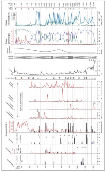 - Feeser, I.; Dörfler, W.; Kneisel, J.; Hinz, M.; Dreibrodt, S. Human impact and population dynamics in the Neolithic and Bronze Age: Multi-proxy evidence from north-western Central Europe. Holocene 2019, 29, 1596–1606. [Google Scholar] [CrossRef] [Green Version]