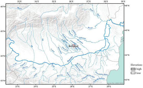 South of the Danube River, the Moesian Platform in Bulgaria is characterised by higher elevations than the Moesian Platform in Romania (Figure 4). Within the Bulgarian Moesian Platform, the altitude rises from west to east. Hills and plateaus are the typical geomorphological features, with steep meandering valleys (e.g., Yantra, Russenski Lom). The Bulgarian riverbank of the Danube River is steep, presenting slopes of 50–200 m, higher than the Romanian riverbank [91].