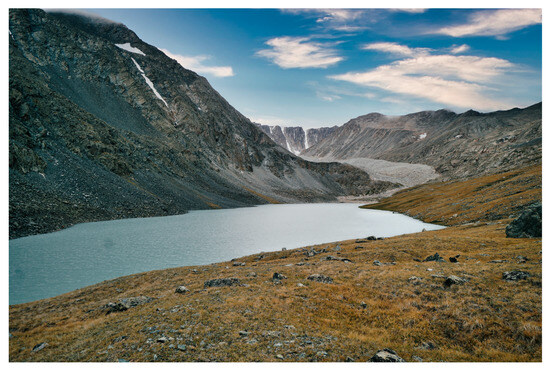 - Demberel, O.; Munkhbat, B.; Dorjsuren, B.; Callaghan, T.V.; Tsogoo, B.; Zemtsov, V.A.; Shaarav, O.; Gongor, E.; Jargalsaikhan, Z.; Ganhuyag, N.; et al. Relationship between dynamics of modern glaciers of the Mt. Munkhkhairkhan (Mongolian Altai) and climate. Water 2023, 15, 1921. [Google Scholar] [CrossRef]