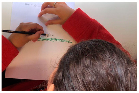 To instigate the child to speak spontaneously and in more detail about their everyday urban experience, as well as their expectations regarding the city, the coordinator carried out individual unstructured interviews that addressed the content of the drawings and other topics relevant to the research objectives (Figure 14).