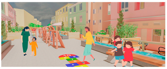The geodesign stage, the process of the cocreation of ideas, was conducted analogically with the children and on the GISColab platform with the technicians. In the future, conducting both experiences on the GISColab web-based platform will be an objective. Despite the limitations in working with the children, they were active and confident in their opinions about ideas for transforming the study area. Using all the data provided by previous steps, the technical group developed a design through cocreation and negotiation, followed by an authorial detailing of the proposals.