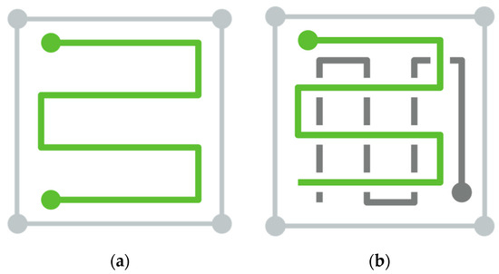 (a) Depiction of a single-grid flight pattern; (b) depiction of a double-grid flight pattern.
