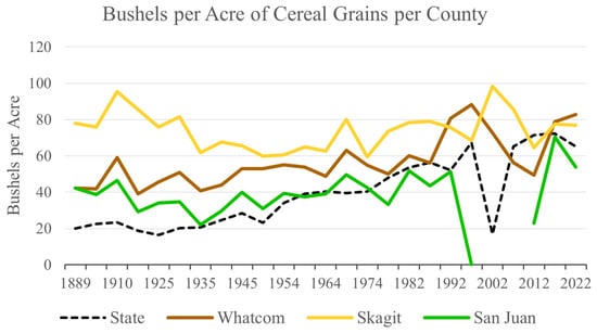 - USDA National Agricultural Statistics Service. Acreage and Quantity of Small Grains, Hay Crops, Sorghums, Corn, and Other Principal Field Crops, Harvested in 1934 and 1929. Available online: https://agcensus.library.cornell.edu/wp-content/uploads/1935-Washington-COUNTY_TABLES-1514-Table-03.pdf (accessed on 14 January 2025).