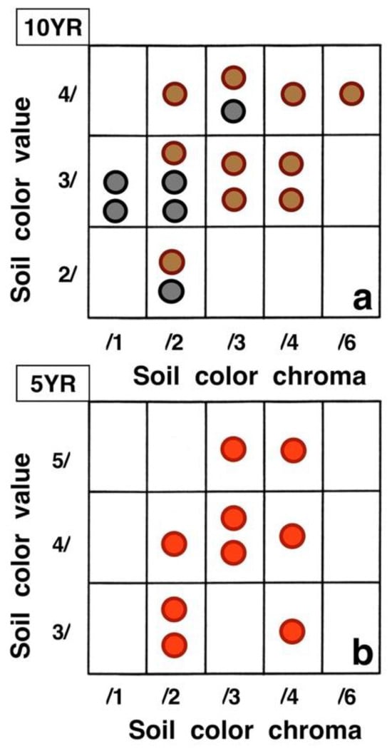 - Soil Survey Staff. Keys to Soil Taxonomy, 12th ed.; USDA Natural Resources Conservation Service: Washington, DC, USA, 2014. [Google Scholar]